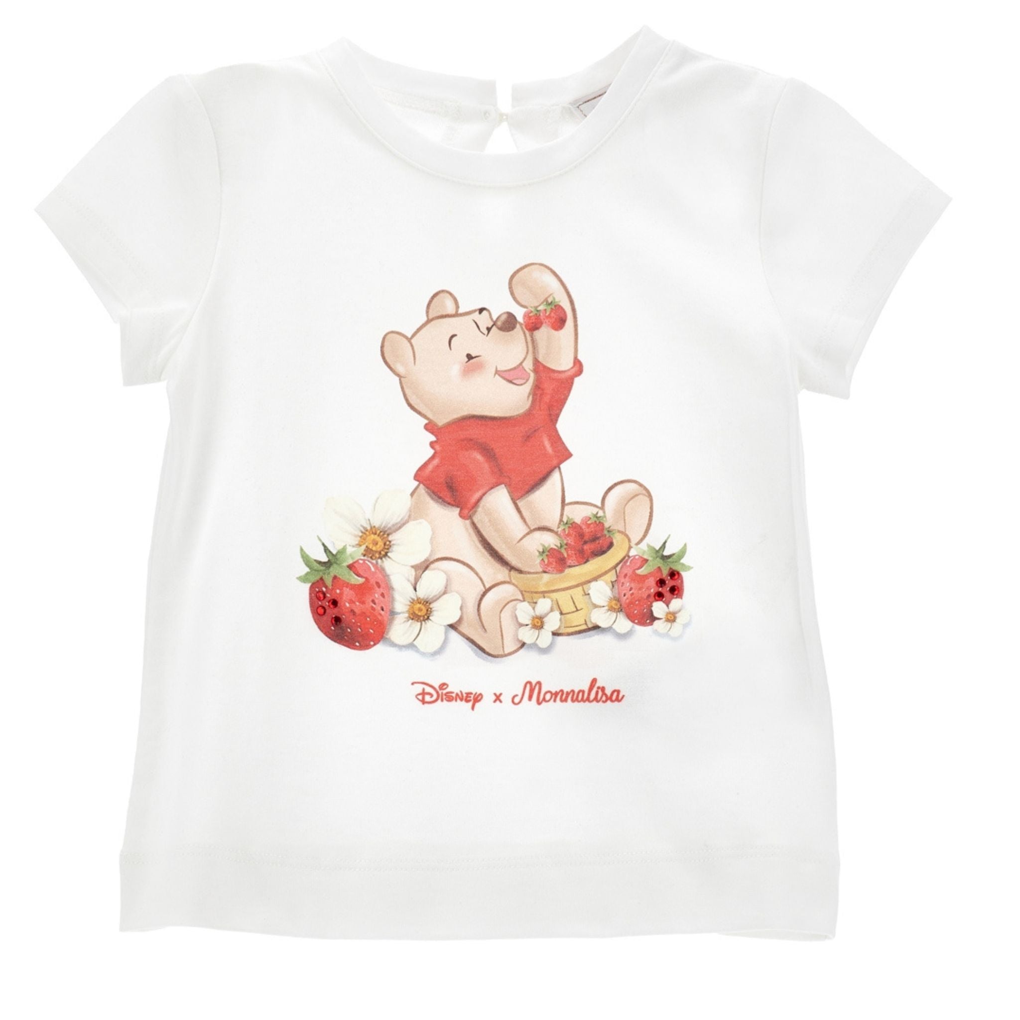Dit vrolijke T-shirt van Monnalisa is gemaakt van zacht katoen en bedrukt met Winnie the Pooh die geniet van een mand vol aardbeien. Een luchtige en speelse toevoeging aan de zomergarderobe van je meisje.