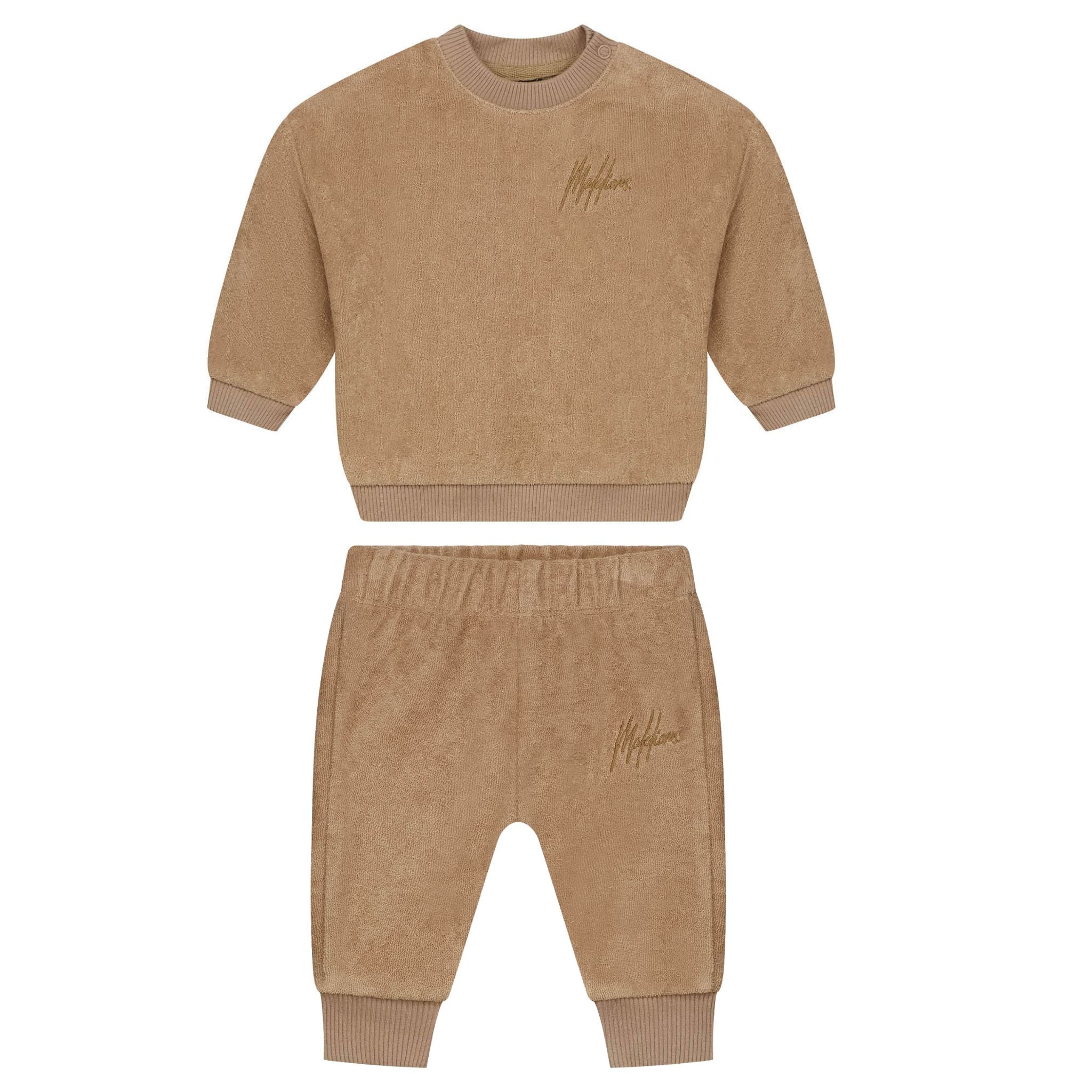 Deze Malelions Towelling set (art. 1AW2505AW2507366) is speciaal ontworpen voor de allerkleinsten en combineert comfort met stijl. De set bestaat uit een zachte sweater en bijpassende joggingbroek, beide uitgevoerd in een warme camel kleur en gemaakt van badstof materiaal. Dit geeft de outfit niet alleen een trendy look, maar voelt ook heerlijk zacht aan op de huid. De sweater is afgewerkt met een subtiel Malelions-logo op de borst, terwijl de broek voorzien is van een elastische tailleband en comfortabele boorden. Perfect als complete outfit voor relaxmomenten of een stoere casual look.