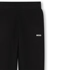 Geef de garderobe van jouw kind een stijlvolle upgrade met deze klassieke zwarte joggingbroek van BOSS, model J52288. Deze joggingbroek combineert het comfort van sportkleding met de verfijnde uitstraling waar BOSS om bekend staat – perfect voor jonge trendsetters die graag modieus én comfortabel gekleed gaan.