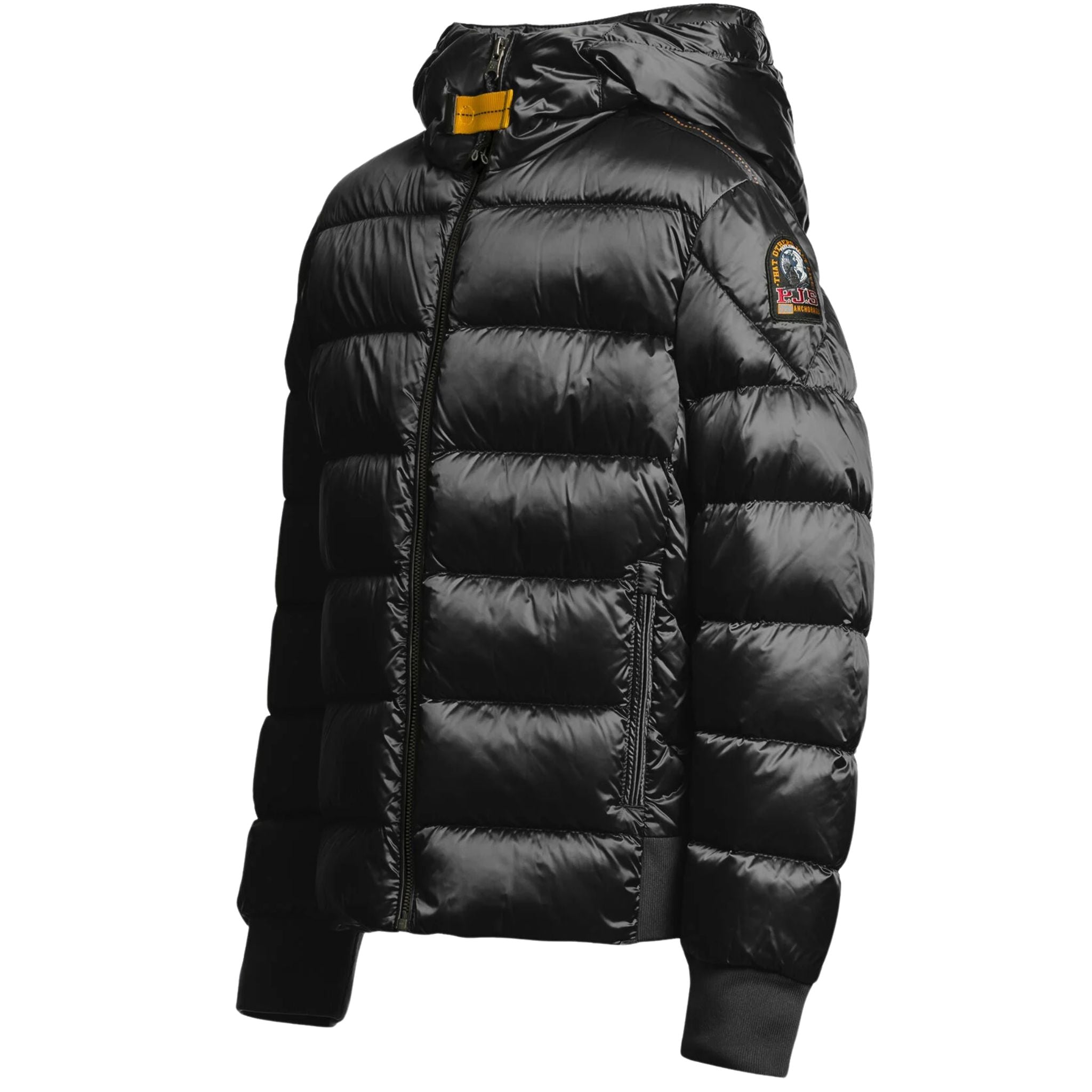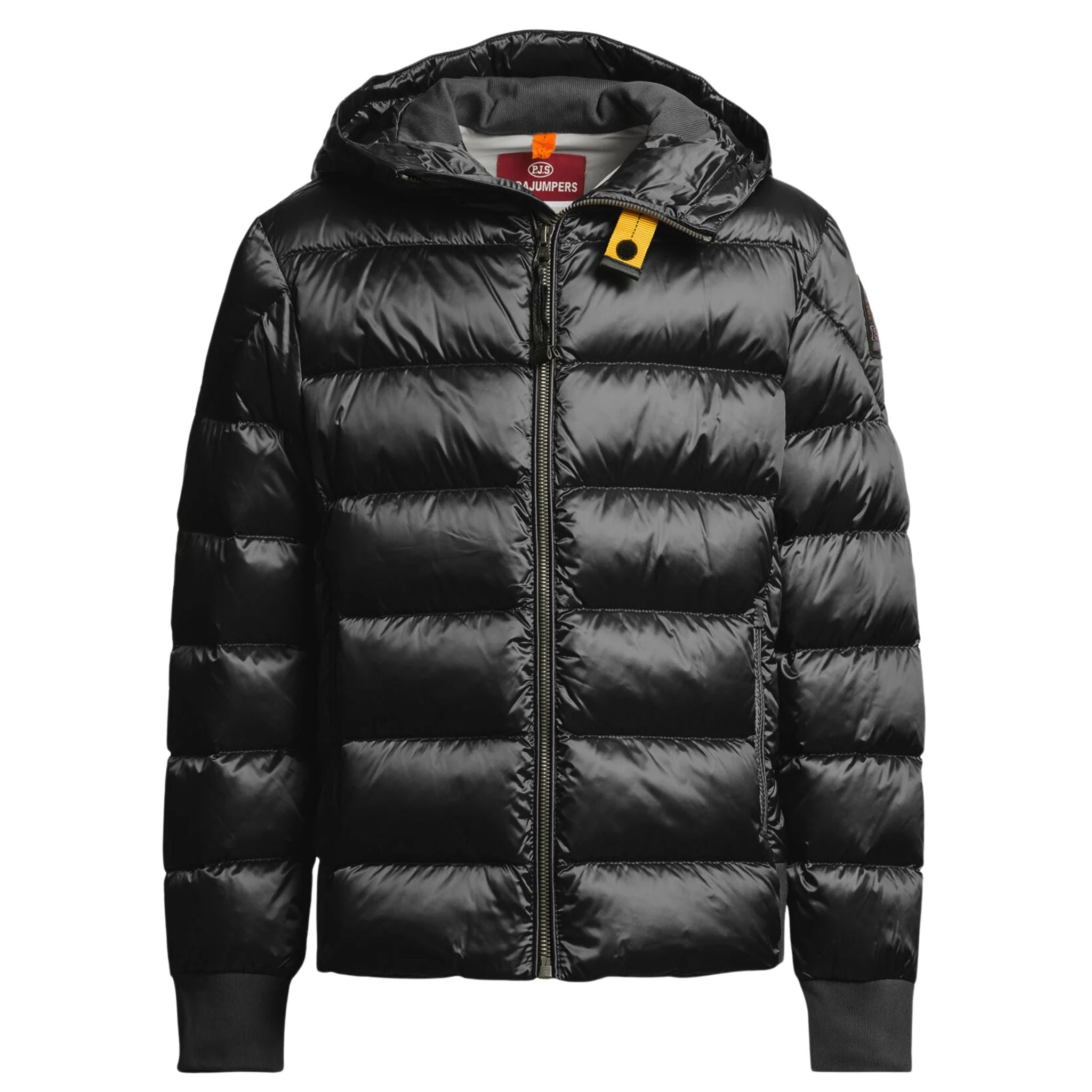 Parajumpers-patch op de mouw en sluiting met de bekende gele strook op de hals