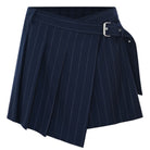 Deze donkerblauwe plooirok van Kocca is een echte klassieker met een moderne twist. Het rokje is voorzien van fijne krijtstreepjes en een trendy overslag met ceintuur en zilverkleurige gesp, wat zorgt voor een stoere maar toch elegante uitstraling. Dankzij de comfortabele pasvorm en de speelse plooien is dit item perfect voor zowel schooldagen als feestelijke gelegenheden. Een veelzijdige musthave die moeiteloos te combineren is met truien, blouses of vestjes.