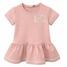Een klassiek roze jurkje met speelse plooien en een geborduurd Twinset-logo op de borst. De mouwtjes en zoom zijn afgewerkt met een fijne ajour rand voor een subtiele twist.