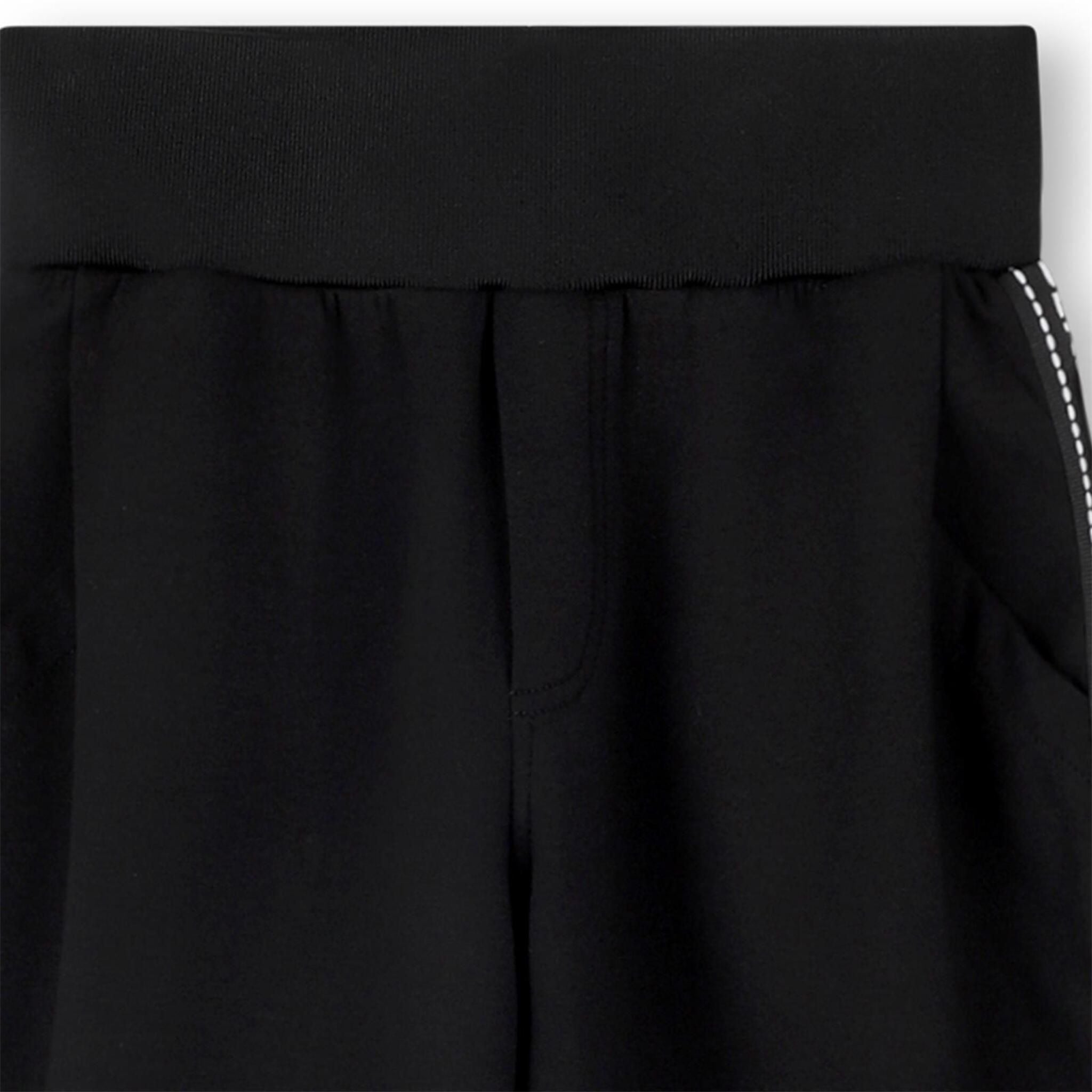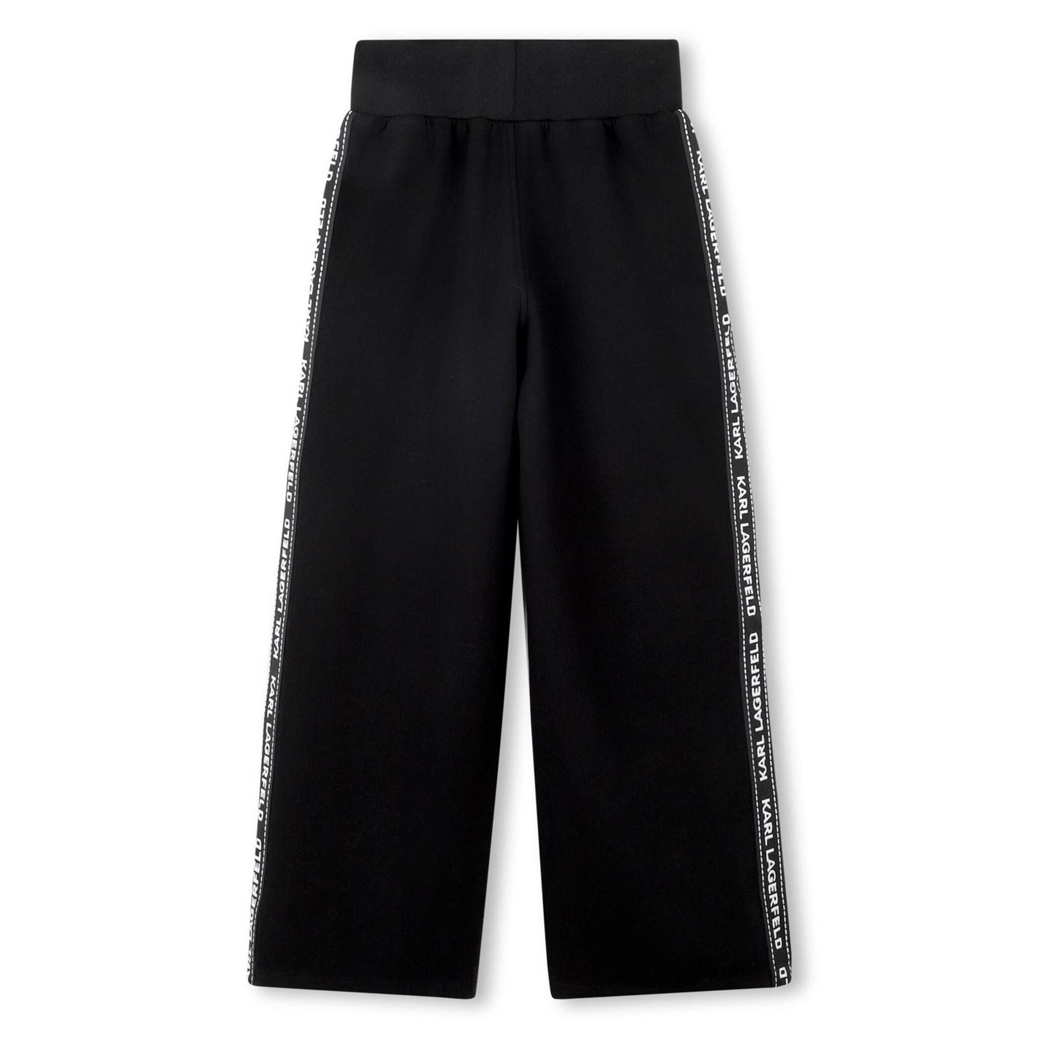 Deze zwarte broek van Karl Lagerfeld Kids is hét toonbeeld van moderne eenvoud met een fashionable touch. De wijduitlopende pijpen in combinatie met de kenmerkende logotapes aan de zijkanten geven deze broek een sportief-chique uitstraling, perfect voor jonge trendsetters.