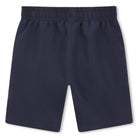 Deze navy BOSS baby zwembroek heeft een sportieve, luxe uitstraling met verfijnde colourblock details bij de zakken in beige, wit en zwart. Het subtiele BOSS-logo op het been geeft de zwembroek een herkenbare designer touch zonder te overheersen.