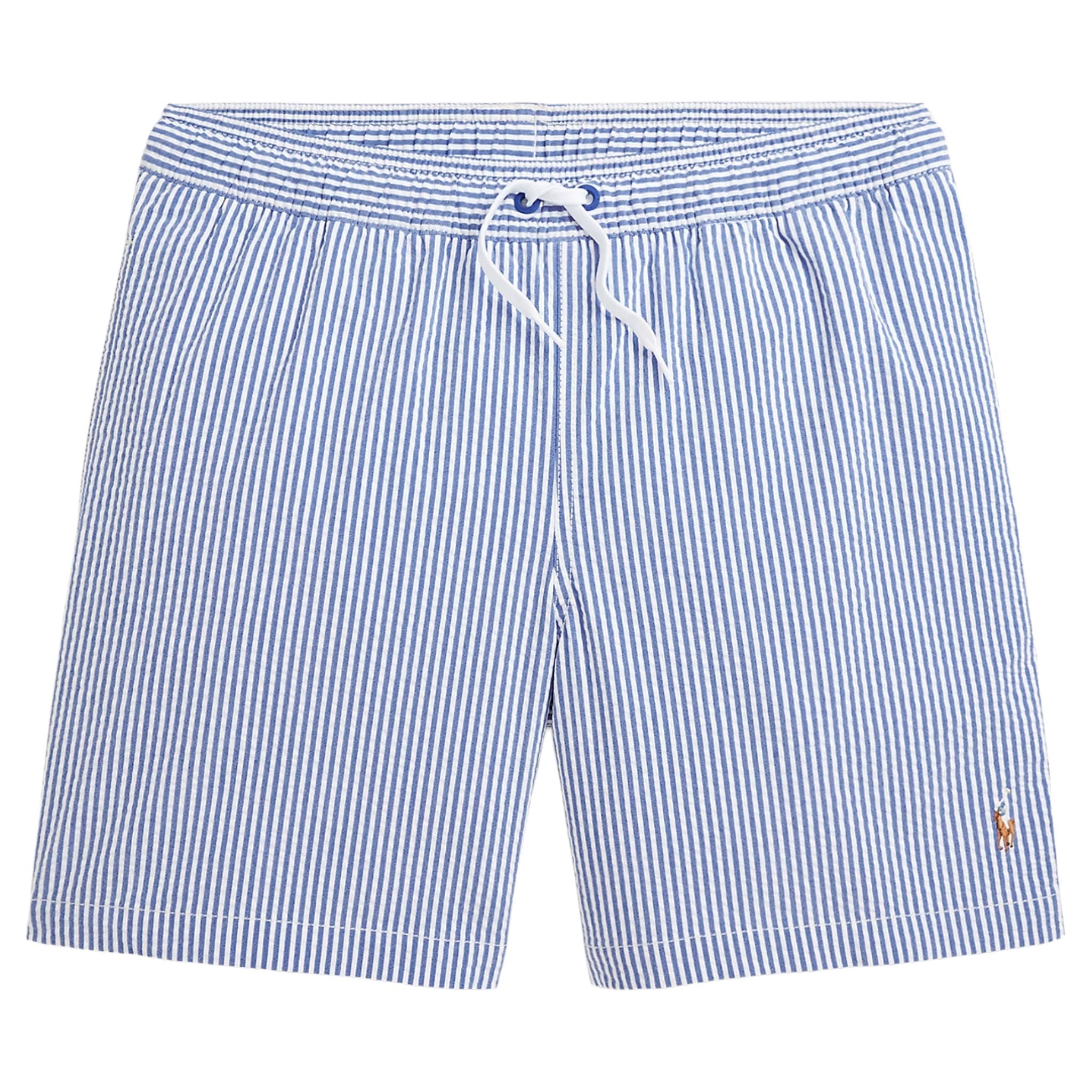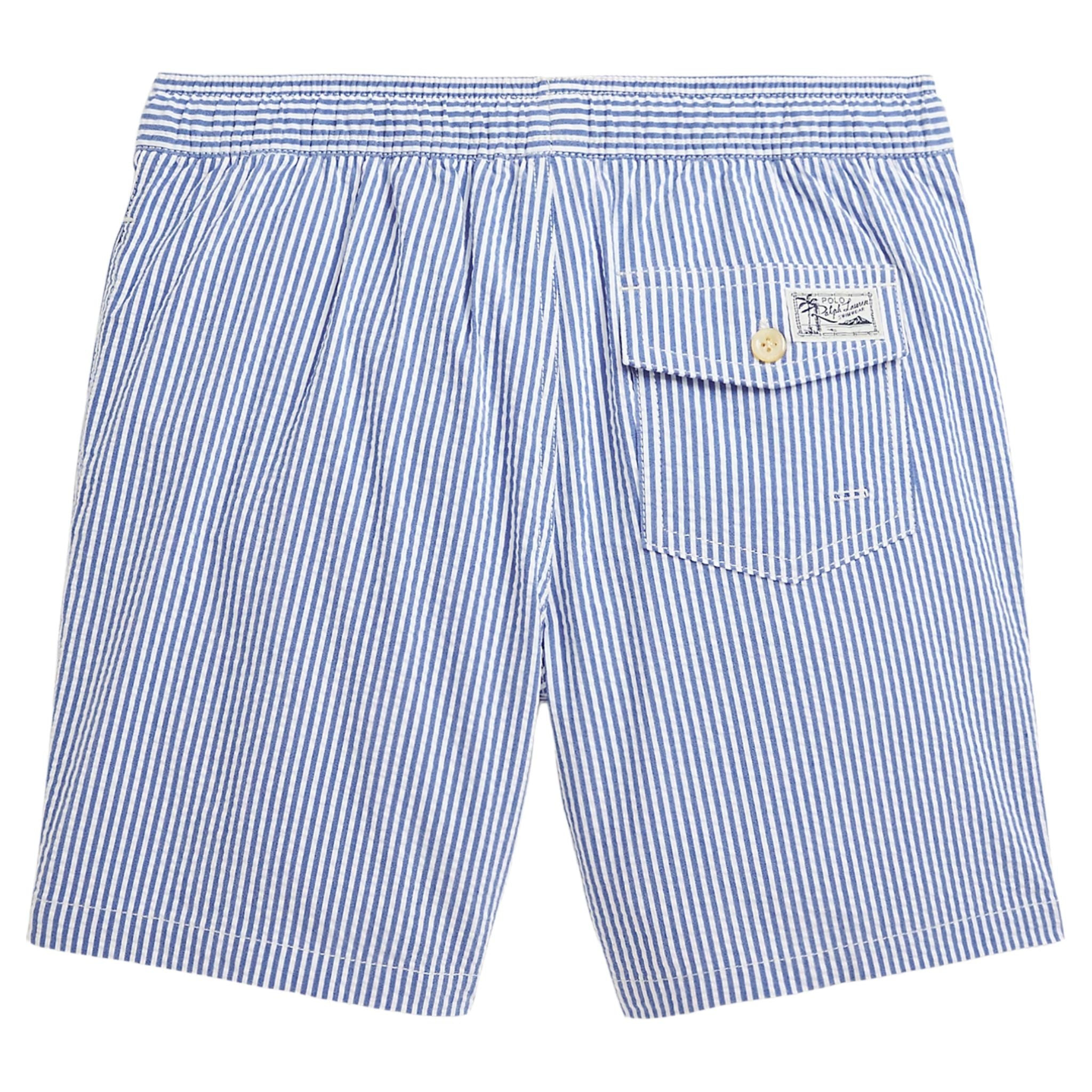 Deze jongenszwembroek met klassieke blauw-witte strepen combineert een tijdloze look met optimaal draagcomfort. Het lichte, ademende materiaal en de elastische tailleband met koord zorgen voor een fijne pasvorm, ideaal voor zonnige stranddagen en eindeloos speelplezier aan het zwembad. De iconische Polo-look geeft deze zwembroek een verzorgde, zomerse uitstraling.