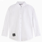 Tijdloos met een trendy twist! Deze witte blouse van Patrizia Pepe Girl is een echte essential voor de garderobe van elke stijlvolle meid. Het klassieke ontwerp met kraag en knoopsluiting krijgt een moderne upgrade dankzij de zwarte logo patch onderaan en het subtiele hangerdetail aan de kraag.
