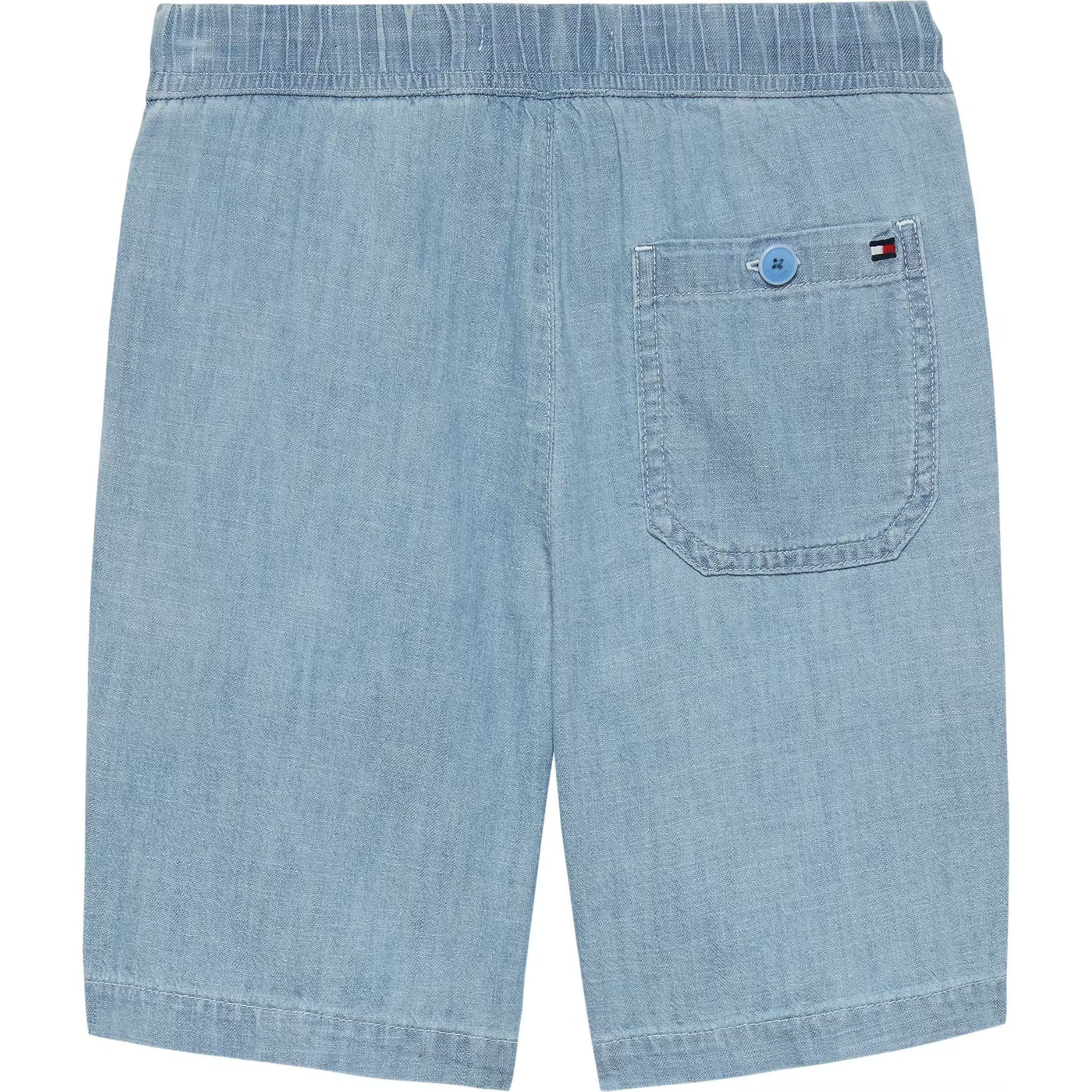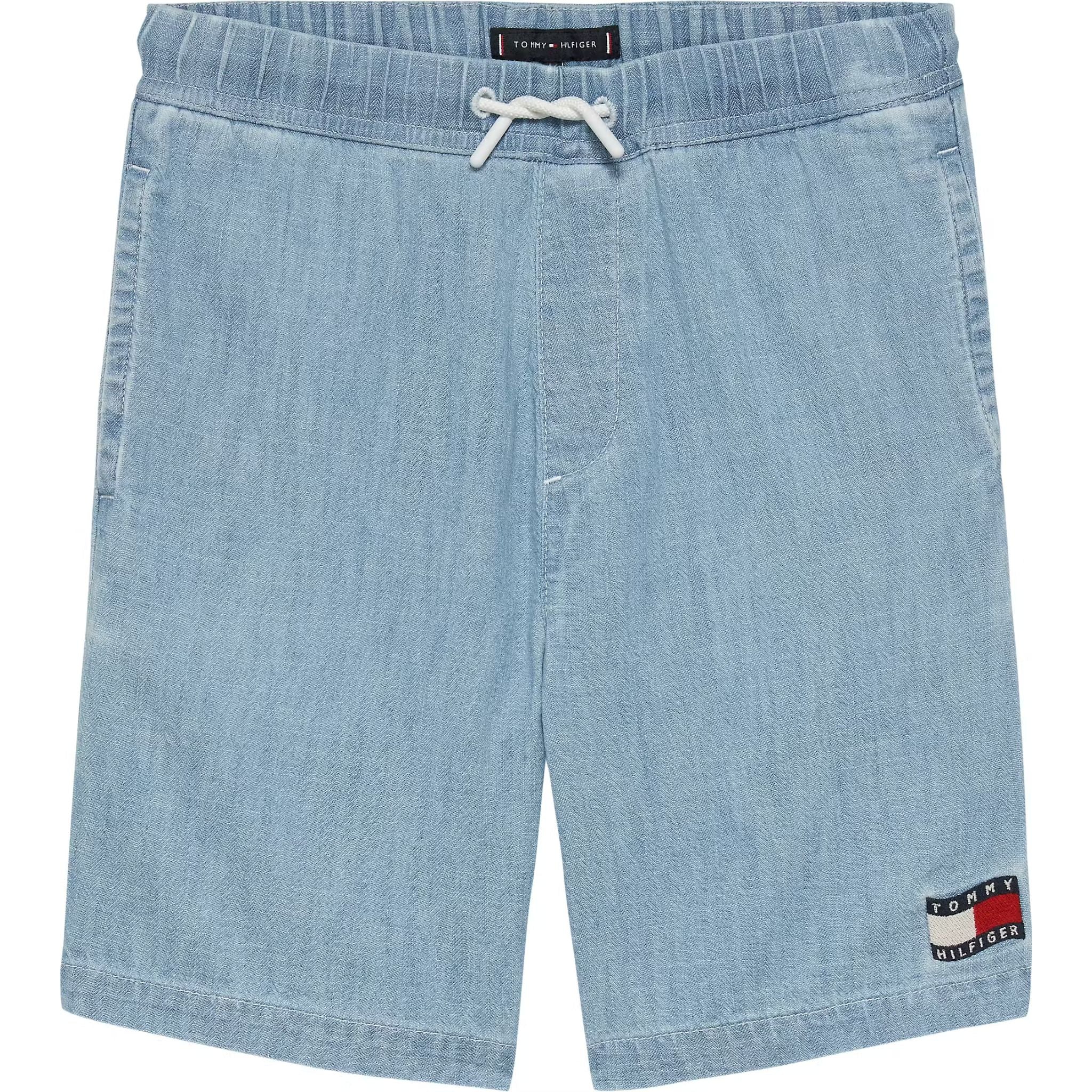 Deze lichtblauwe short van Tommy Hilfiger Kids combineert de stoere uitstraling van denim met het comfort van een zachte, soepele stof. De short heeft een elastische tailleband met trekkoord, waardoor hij gemakkelijk aan- en uit te trekken is en perfect blijft zitten tijdens het spelen. Het iconische Tommy Hilfiger logo op het been geeft de short een herkenbare en stijlvolle finishing touch.