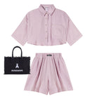 De lila linnen short is een stijlvol en luchtig item dat ideaal is voor zonnige dagen. De elastische tailleband en elegante plooien zorgen voor een comfortabele, flatterende pasvorm.