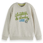 Laat creativiteit en stijl samenkomen met deze vrolijke en comfortabele sweater van Scotch & Soda. Deze grijs gemêleerde trui is een echte blikvanger dankzij de opvallende tekstprint en speelse illustratie, en is ideaal voor actieve jongens die graag hun eigen stijl laten zien.