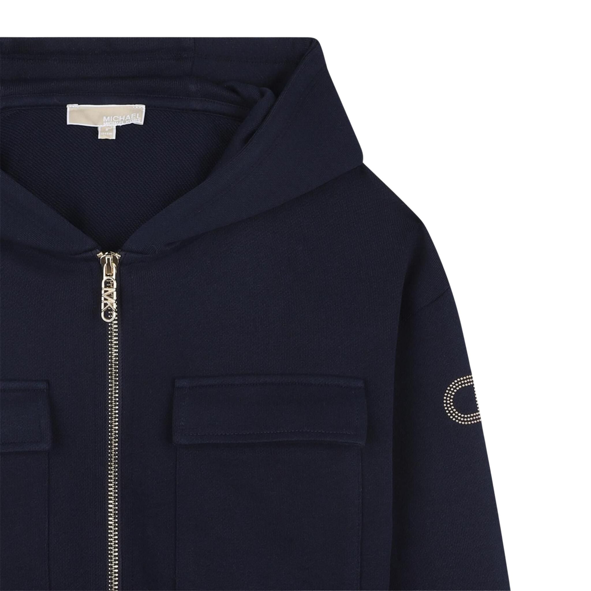 Michael Kors Meisjes Hoodie met Rits – R30471 – Donkerblauw met Strasslogo