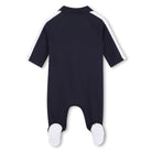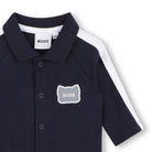 Dit BOSS Baby boxpakje is een stijlvolle keuze voor je kleintje en verkrijgbaar in drie kleuren: klassiek wit, zacht lichtblauw en modern donkerblauw. Het pakje is uitgevoerd in een zachte katoenmix en afgewerkt met een klassieke polokraag en subtiele BOSS-logopatch op de borst. De praktische drukknoopsluiting aan de voorkant maakt aankleden en verschonen extra eenvoudig. Dit boxpakje biedt de perfecte combinatie van comfort en een nette uitstraling – ideaal voor dagelijks gebruik of als mooi cadeautje.