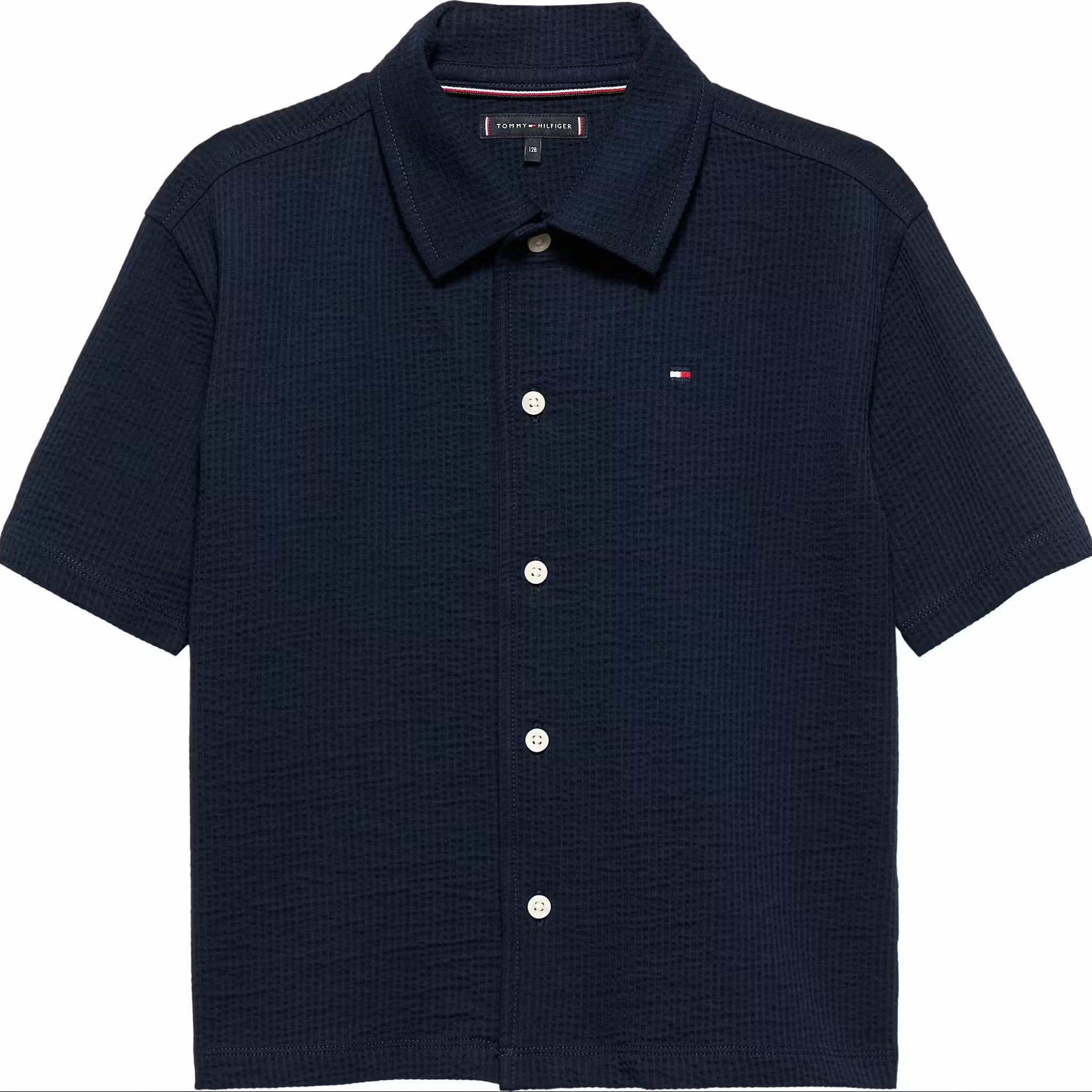 Dit donkerblauwe overhemd met korte mouwen van Tommy Hilfiger is een stijlvolle en comfortabele keuze voor warme dagen. Het overhemd is gemaakt van een lichtgewicht, gestructureerde stof die ademend aanvoelt en prettig draagt. De klassieke kraag, knoopsluiting en het subtiele Tommy Hilfiger-vlaglogo op de borst geven het overhemd een verzorgde, tijdloze uitstraling. Ideaal voor zowel casual als nettere momenten.