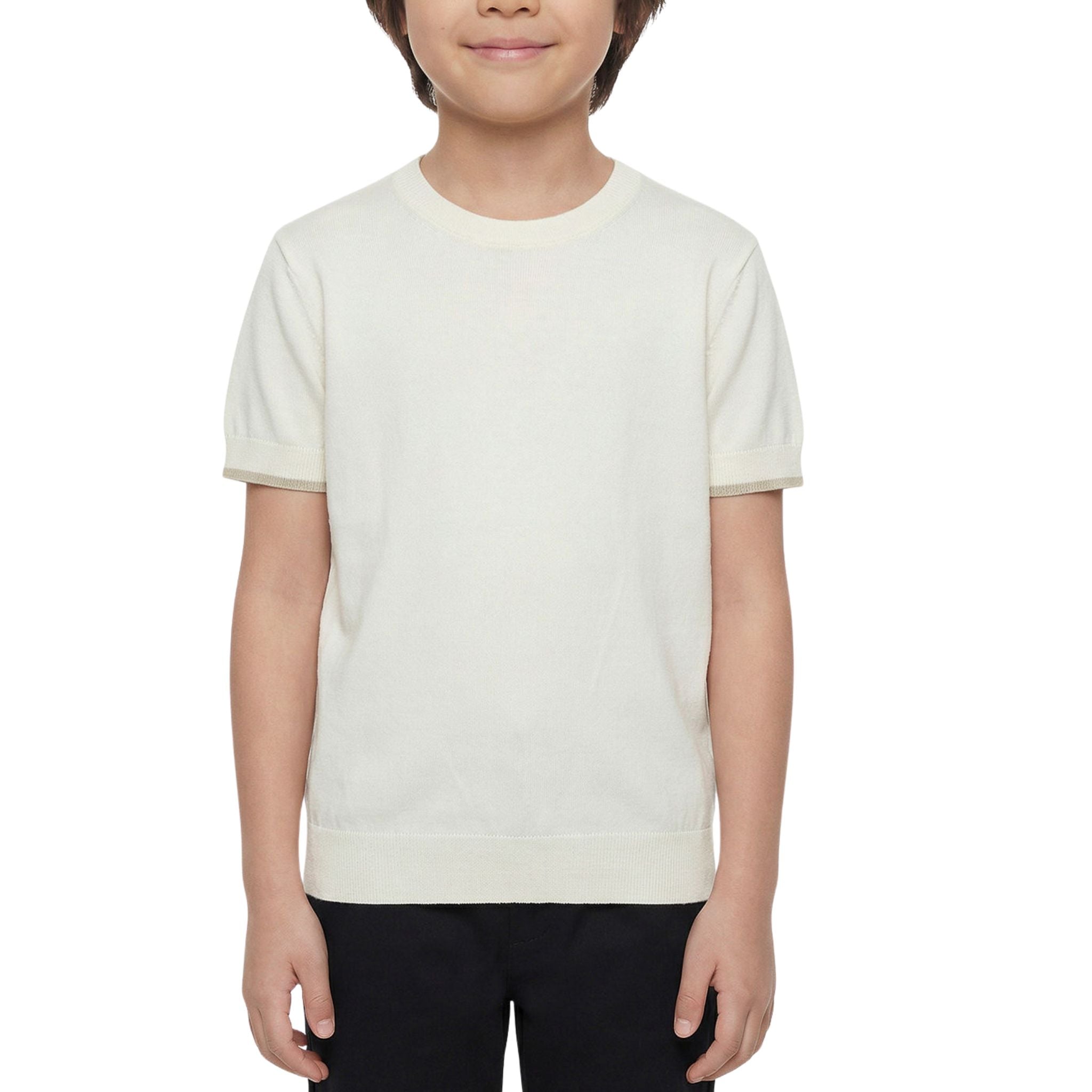 Deze gebreide T-shirts van Antony Morato brengt een verfijnde twist in de kindergarderobe. Uitgevoerd in een lichte, ademende knit, met korte mouwen en een klassieke ronde hals. Zowel in wit als beige verkrijgbaar en ideaal om netjes én comfortabel te dragen.